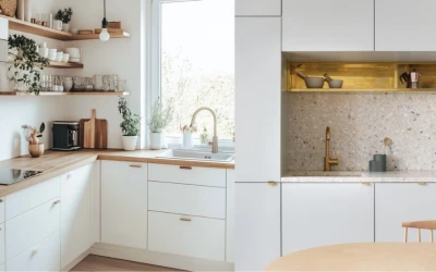 Biela kuchyňa je ako prázdne plátno – dlaždice jej dávajú dušu. Ak preferujete elegantný vzhľad, siahnite po lesklých bielych obkladoch v subway štýle alebo po mramorovom dekore. Pre útulnejší pocit môžete zvoliť dlaždice so vzorom terazzo, jemnou textúrou alebo teplým odtieňom béžovej.
